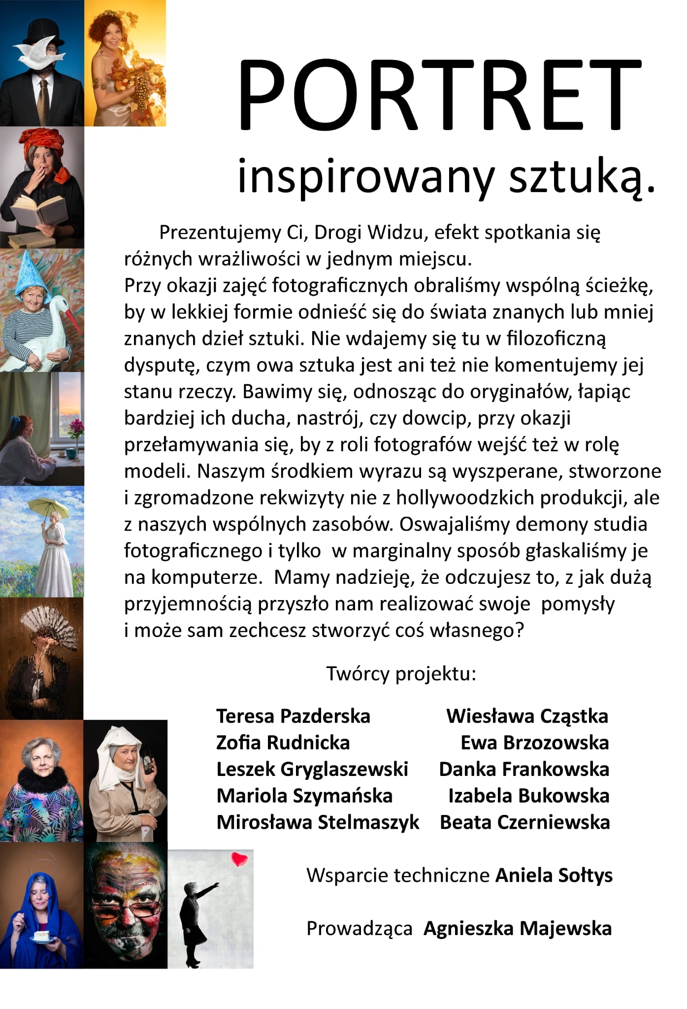 Dziś na naszym Sopocki Uniwersytet Trzeciego Wieku w Centrum Kształcenia Ustawicznego odbył się wernisaż wystawy prac fotograficznych grupy pani Agnieszki Majewskiej pt. "PORTRET inspirowany sztuką". Autorzy postanowili stworzyć fotografie, które nawiązują do obrazów znanych artystów, sami wcielili się w role modeli i zadbali o charakteryzację i scenografię.